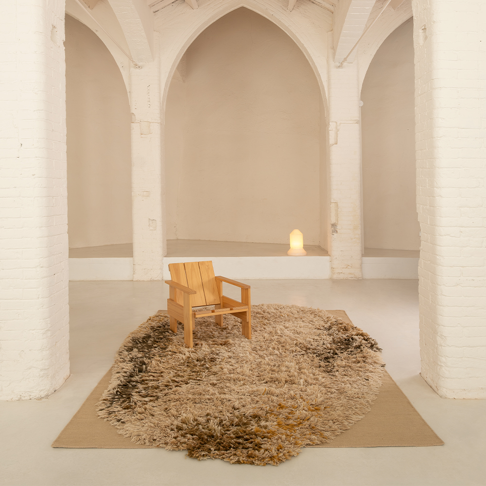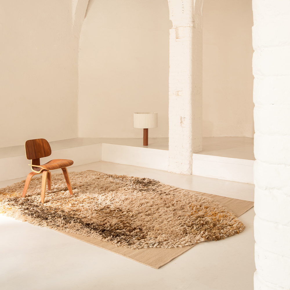 The hand-tufted construction results in a soft, tactile surface with a strong material presence. Its structure provides comfort underfoot and durability suited to residential interiors, lounge areas, and contract environments. Alfombra Alga functions as an active element within the spatial composition rather than a mere background piece.